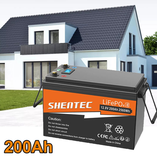 SHENTEC 12V 200Ah Batería de Litio LiFePO4 para Barco Camper 6000+ Ciclos