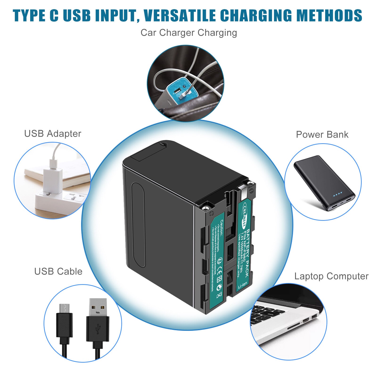 - 2 baterías adicionales totalmente compatibles: Dos baterías de reemplazo con capacidad de 7.4V 10500mAh. batería de reemplazo de capacidad ultraalta para SONY NP-F930, NP-F950, NP-F960, NP-F970, NP-F970D, NP-F975, NP-F980, NP-F990 100% compatible para sustituir su batería original.